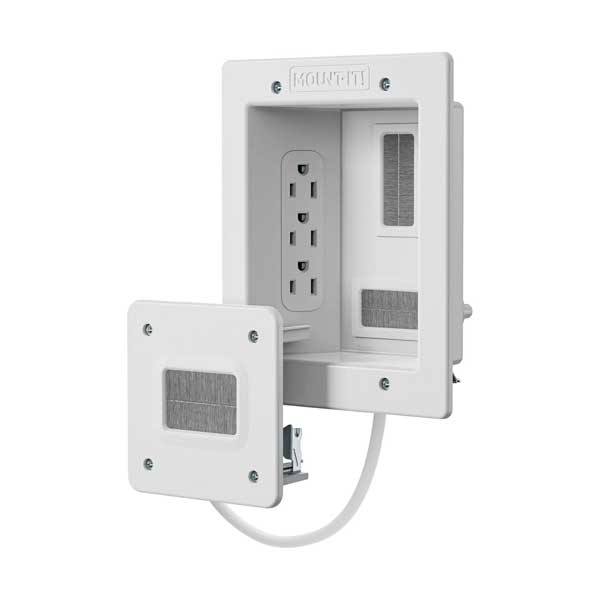 The Mount-It! MI-7284 delivers professional-grade cable management for wall-mounted entertainment systems. This two-piece in-wall solution combines a recessed power module with three outlets and a 9-foot pre-wired cord, eliminating visible wiring without requiring professional installation. The integrated brush pass-through accommodates low-voltage cables like HDMI and audio connections, while the complete toolkit—including drywall saw and cutting templates—ensures straightforward DIY setup. ETL certified for safety and reliability, this system transforms cluttered entertainment areas into clean, minimalist displays. Perfect for home theater enthusiasts seeking a polished, wire-free aesthetic behind their wall-mounted displays.