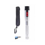 The Platinum Tools Fiber Optic Visual Fault Locator (TVFL100) is equipped with a bright 10mW laser that allows for both continuity testing and detecting breaks and bends in most types of fiber optic cable. Made from durable aluminum, this device features a simple slide switch for selecting between a flashing or solid beam. The hinged flip cap protects the lens when not in use, and with compatibility for both 1.25mm and 2.5mm ferrules, it can work with a variety of fiber optic sizes and connector types. Running on just 2 AA batteries (included), this fault locator can last for more than 20 hours. It is a valuable tool for testing cables before installation and for identifying faults in patch and breakout cables. With its powerful 10mW laser, faults are easy to spot. The convenient flip-cap protects the laser tip, and the included adapter allows for use with most common sizes and types of fiber connectors.