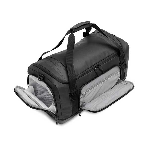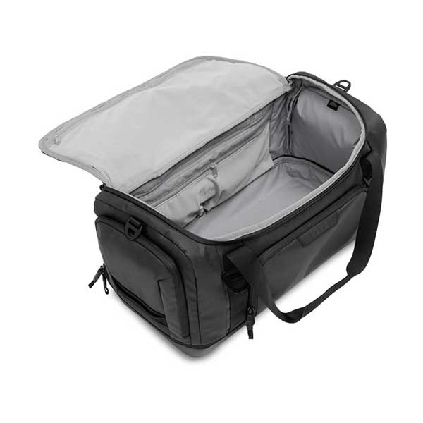 The Veto Pro Pac Norwalk+ 40L Duffel (VTO20011) is a robust storage and transport solution crafted for demanding professional environments. Constructed from water-resistant waxed polyester and featuring an impact-resistant thermoformed base, this bag maintains upright stability for easy access. Its 40-liter capacity is optimized with an adaptable pocket layout, including a separate shoe compartment, a water-resistant toiletry section, and a rear zippered pocket accessible internally or externally. Designed to carry up to 50 lbs, it offers multiple carrying options such as dual padded handles, side grab handles, and an adjustable shoulder strap. Additional features include RFID-blocking front pockets, magnetic trolley handle pass-through, reinforced D-rings, lockable YKK® zippers, and a low-profile key clip. Dimensions: 12.5" x 21" x 10.5"; weight: 4 lbs; backed by a 5-year limited warranty.