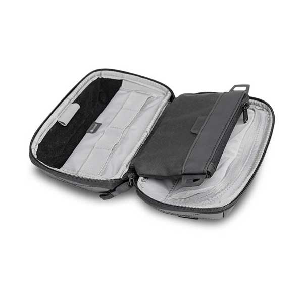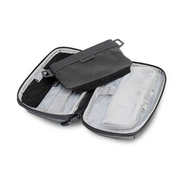 The Veto Pro Pac Norwalk Tech Case (VTO20003) is a compact, highly functional organizer designed for tech accessories. Crafted from durable, recycled, water-resistant 600D waxed polyester, it opens flat with a clamshell design for full visibility and easy access. Inside, you'll find multiple elastic loops for cords, a gusseted pocket sized for large power banks, pen holders, zippered compartments, and stretch mesh pockets to keep gear orderly. It includes a removable two-compartment pouch and a custom double-gated carabiner, all supported by a low-profile handle and a reflective logo for added visibility. Backed by a 5-year limited warranty, this case balances durability and smart organization in a lightweight, portable design.