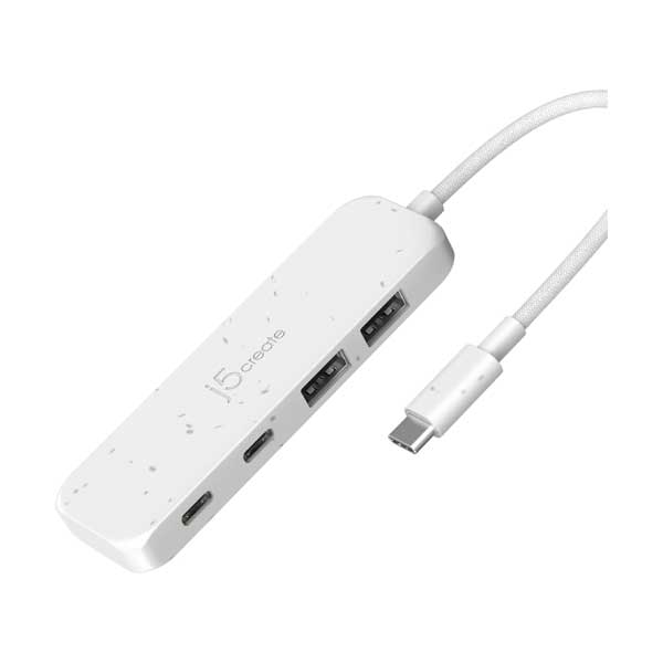 The j5create JCH342EW transforms your single USB-C port into a versatile four-port hub featuring two USB-C and two USB-A connections. Built from UL-certified recycled ABS plastic, this eco-conscious hub delivers SuperSpeed+ data transfers at 10Gbps across all ports, making it ideal for rapid file synchronization and media workflows. Its bus-powered design eliminates the need for external adapters, while the plug-and-play setup requires zero driver configuration. Measuring just 3.94 inches wide with a 5.9-inch cable, this lightweight hub fits seamlessly into your mobile workspace—whether you're working from home, the office, or traveling. Fully compatible with Windows, macOS, and Chrome OS systems, it provides the connectivity expansion professionals demand without compromising portability or environmental responsibility.