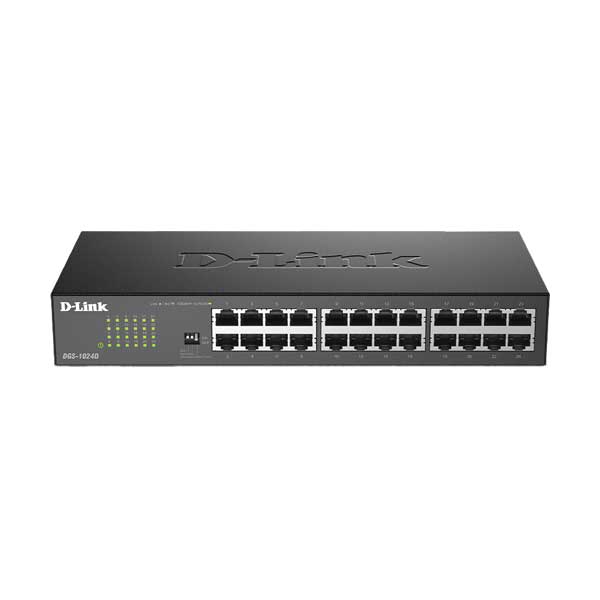 The D-Link DGS-1024D is a 24-port Gigabit unmanaged desktop switch tailored for SOHO and SMB environments seeking enhanced network speeds. It offers cable diagnostics for troubleshooting and a 3-pin front panel DIP switch to control EEE, Flow Control, Port Isolation, and Storm Control. Each port supports Auto MDI/MDIX crossover and IEEE 802.3x Flow Control. Installation is plug-and-play, while the integrated QoS engine optimizes traffic. Energy efficiency is ensured through IEEE 802.3az EEE, link status detection, and cable length detection to minimize power consumption.