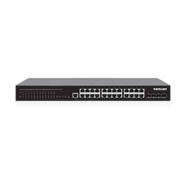 Ports: 24 x 10/100/1000 Mbps RJ45 PoE-enabled ports and 4 x 10G SFP+ uplink slots.