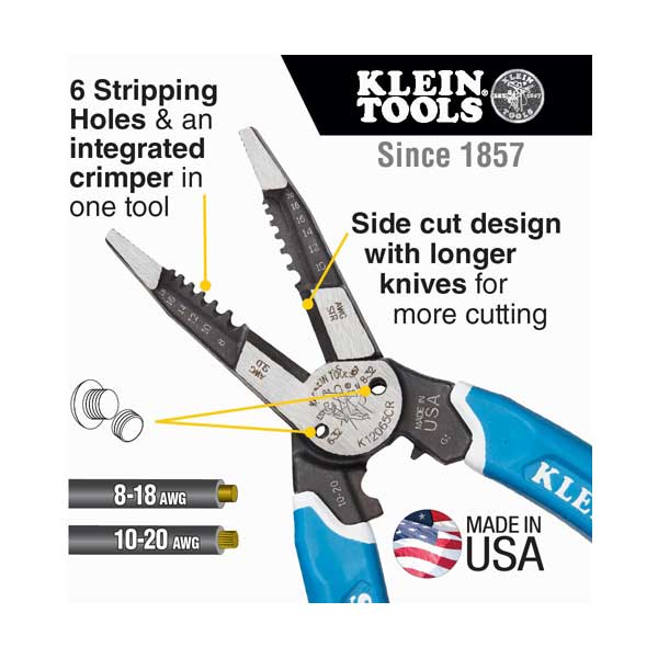 Klein Tools K12065CR Klein-Kurve 8-20 AWG Heavy-Duty Wire Stripper / Cutter / Crimper Multi Tool