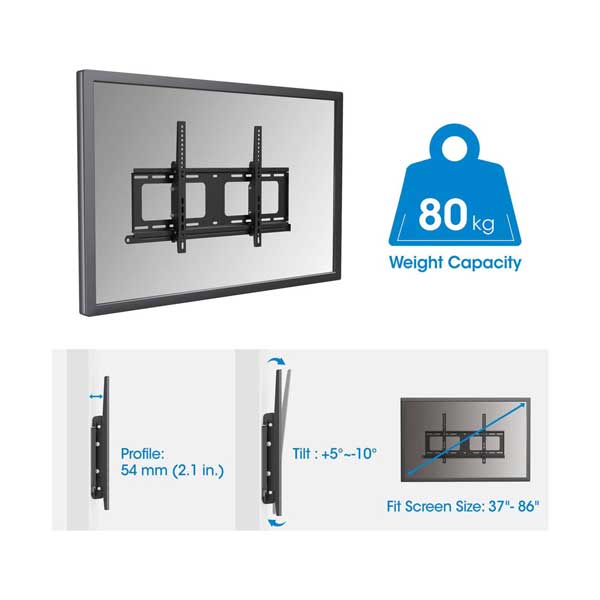 Supports one flat or curved 37" to 86" TV up to 80 kg (176 lbs.)