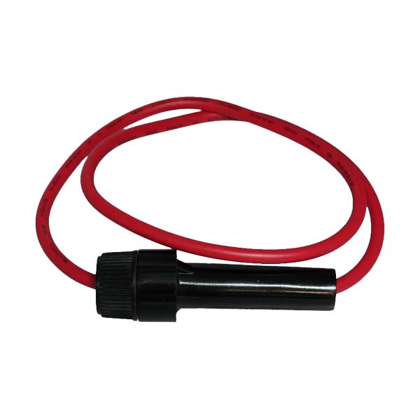 The OptiFuse LPA-24B-12R is a reliable in-line fuse holder designed for 6.3mm x 32mm (¼" x 1¼") glass or ceramic fuses. Suitable for electrical systems, it supports both AC (up to 250VAC) and DC (up to 32VDC) applications with a 30A current rating. It features 12 AWG wire leads and a phenolic body rated UL 94V-1 for flame resistance. Ideal for wire harness assemblies in electronic devices, appliances, and lighting circuits, this UL-recognized holder offers nickel-plated brass contacts and a bayonet cap for secure fuse installation. Dimensions are compact at 0.69 x 0.69 x 2.2 inches.