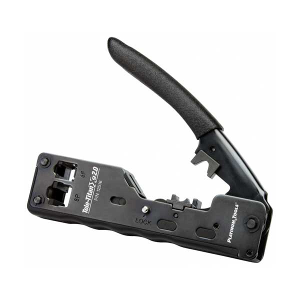 The Tele-Titan Xg 2.0 represents Platinum Tools' latest advancement in high-speed network termination technology. This dual-function crimp tool consolidates two separate crimping operations into a single, efficient instrument designed specifically for CAT6A shielded connectors supporting true 10Gig performance. The innovative design allows technicians to terminate contacts on the front end, then seamlessly transition to the rear end for external ground crimping—eliminating tool changes and streamlining workflow. Its straight-action mechanism delivers precise crimp heights with minimal hand effort, while the ergonomic grip featuring finger grooves and gun-style lock ensures control and security throughout the termination process. Built for professional-grade reliability, this tool handles CAT6A, CAT6e, CAT7, and oversized industrial Ethernet cables with consistent results. Ideal for network installers and technicians demanding efficiency without compromising on 10Gig specification compliance.
