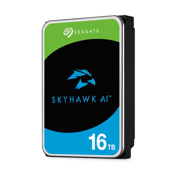 The Seagate SkyHawk AI ST16000VE004 is a 3.5-inch internal hard drive with a 16TB capacity, specifically designed for surveillance purposes. It boasts a 7200 RPM spindle speed, a SATA 6Gb/s interface, and a 512MB cache, making it a reliable and efficient choice for high workloads. With ImagePerfect AI firmware, dropped frames are minimized and downtime is avoided, ensuring smooth video recording. The drive also features a Helium Sealed-Drive Design for enhanced reliability and power efficiency, as well as RV sensors to reduce rotational vibration in multi-drive systems. Additionally, SkyHawk Health Management monitors drive health and provides data protection. With Conventional Magnetic Recording (CMR) technology, data recording is reliable and efficient. Overall, the Seagate SkyHawk AI ST16000VE004 is a top-of-the-line option for surveillance applications.