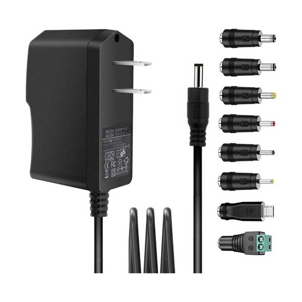 This versatile 6V 2A power adapter converts standard household AC current (100V-240V) to regulated DC output, making it ideal for powering a wide range of low-voltage devices. The included set of 8 interchangeable DC plug tips ensures compatibility with most equipment requiring 6V input up to 2A. Built with comprehensive safety circuitry to guard against overvoltage, short circuits, and overcurrent conditions, plus a heat-resistant shell for reliable long-term operation. The 4.8-foot extension cable provides flexible placement options. Center-positive polarity configuration with 12W maximum output capacity delivers dependable performance across global voltage standards.